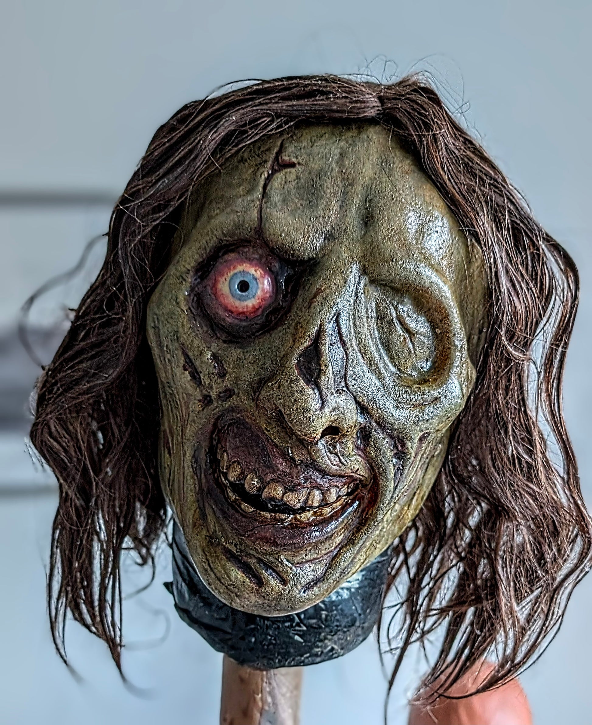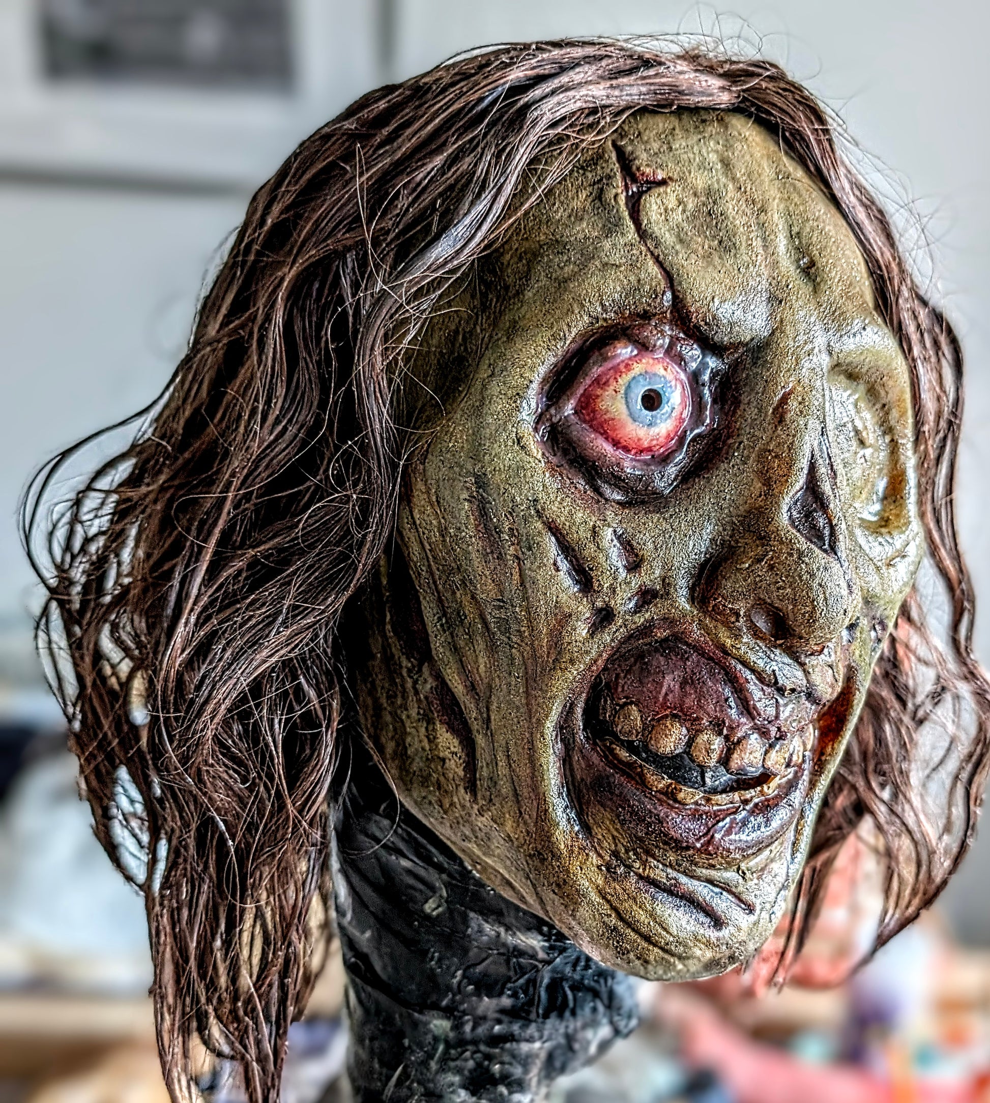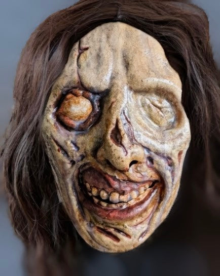 This is my version of Victoria after she emerges from hibernation in T3, a latex face mask with elastic strap, finished with a long wig stitched to the top. Current processing time is about 6-8 weeks but if you need it sooner just let me know!